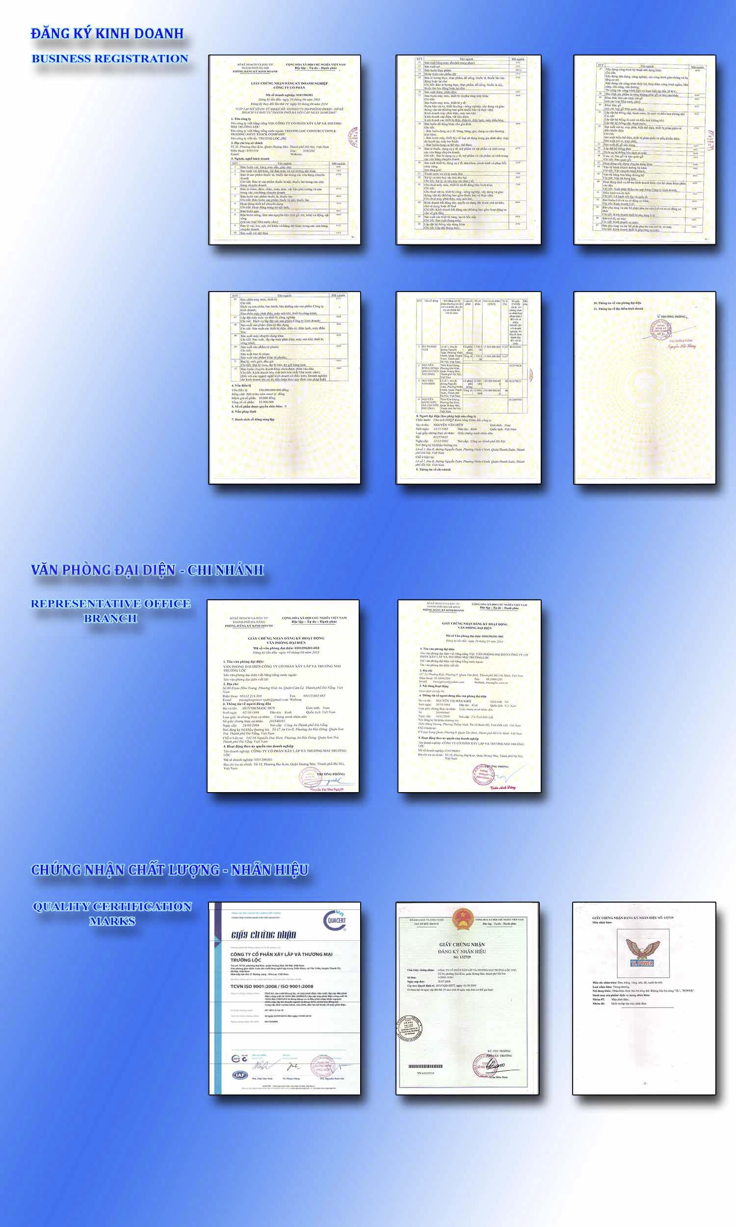 Công ty Cổ phần xây lắp và thương mại Trường Lộc là nhà sản xuất, lắp ráp và phân phối máy phát điện hàng đầu Việt Nam với thương hiệu TL-Power, đã đăng ký nhãn hiệu độc quyền theo quyết định số 18747 ngày 01.09.2009.
